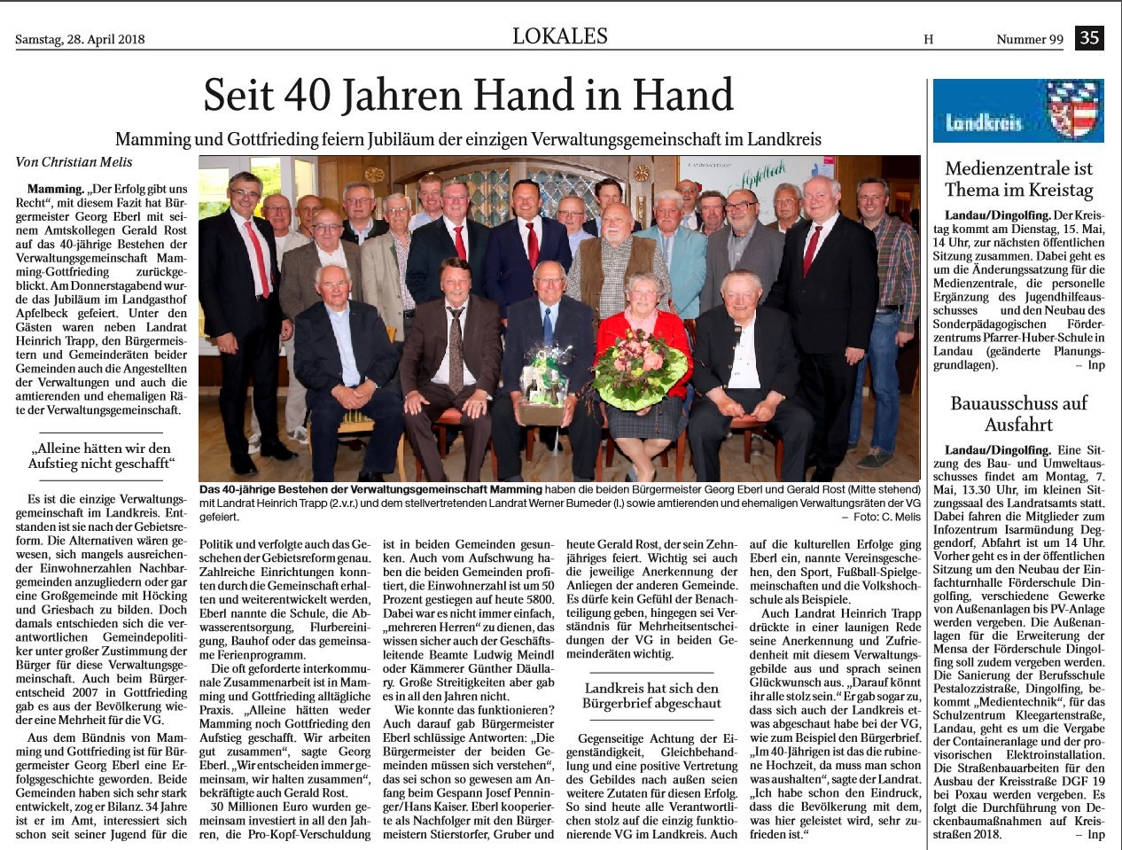 (26. Mai 2008; Dingolfinger Anzeiger) - Konstituierende Sitzung der VG Mamming-Gottfrieding (PDF, 17,6 KB)