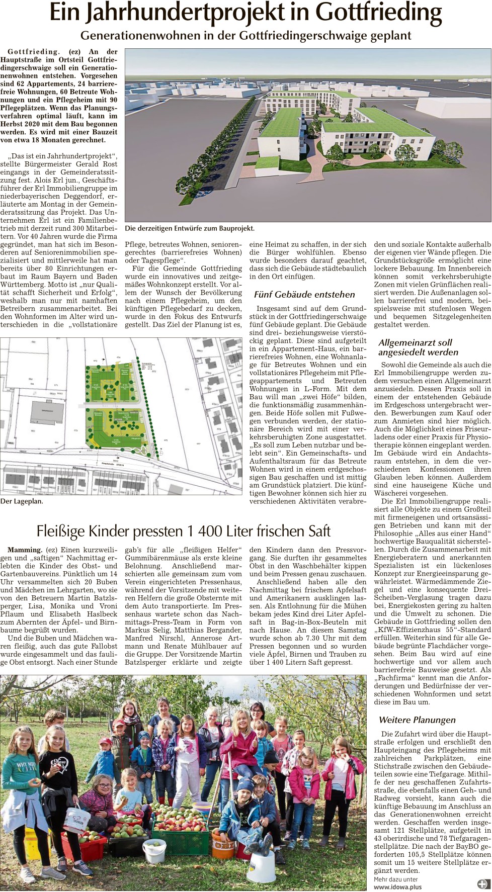 (19. Juli 2025; Dingolfinger Anzeiger) - Projekt mit großer Tragweite – Nächster Bauabschnitt im Gottfriedinger Generationenpark angekündigt – 129 neue Wohnungen für Betreutes Wohnen Plus geplant (PDF, 215,1 KB)