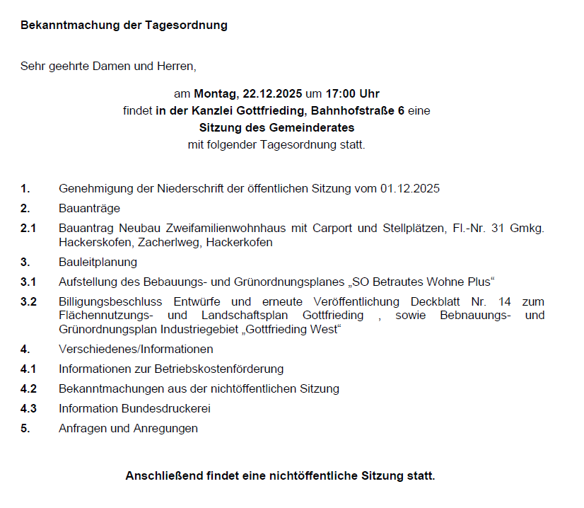 22. Dezember 2025 - 17:00 UhrKanzlei Gottfrieding – neuer Sitzungssaal